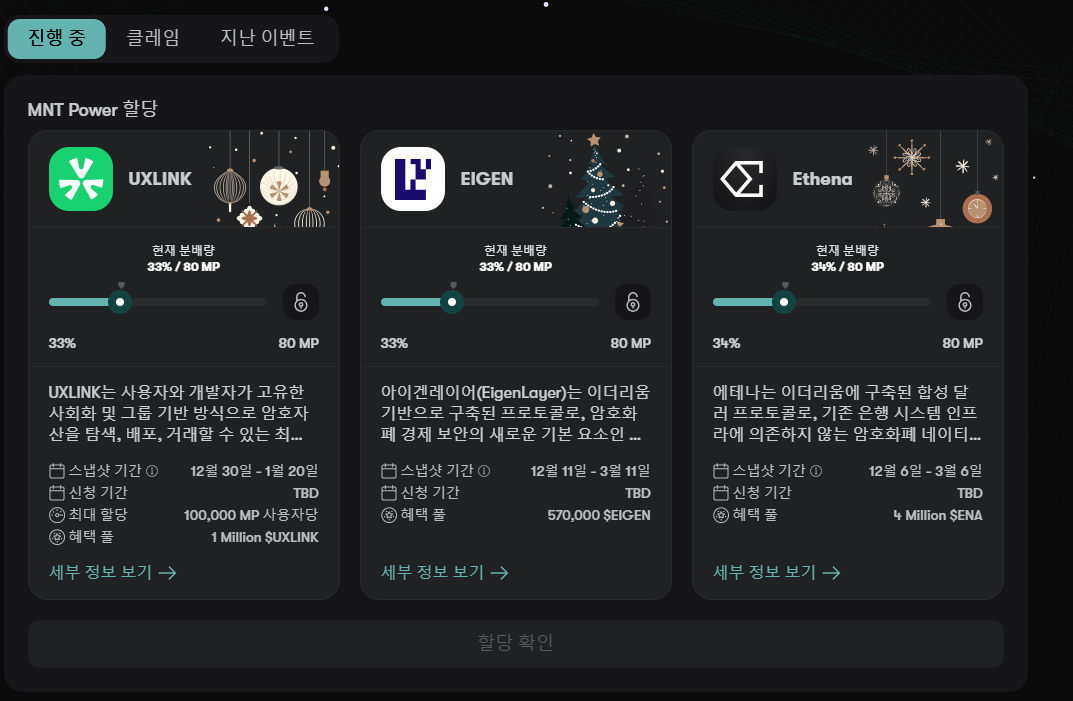 ▶ 락업을 하면 현재 진행중인 이벤트에 자동으로 파워가 할당됨을 확인할 수 있음. 여기에 UXLINK 상세보기에 들어가면 보너스 파워를 얻을 수 있는 미션을 확인 할 수 있음.