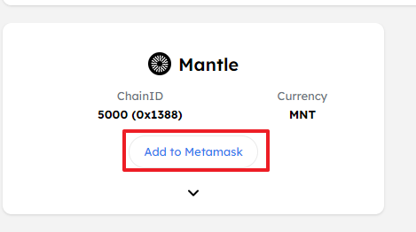 Add to Metamask 클릭하여 지갑에 맨틀 네트워크 추가하기