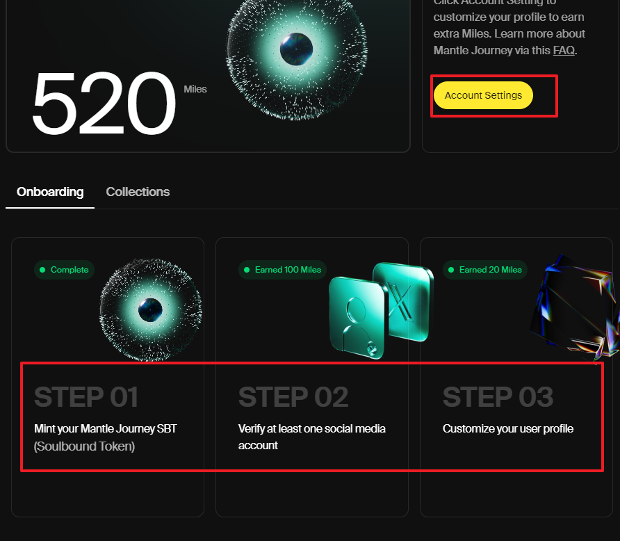 Step1. Mantle Journey SBT 민팅하기- 가스비로 쓰일 소량의 MNT가 필요합니다.