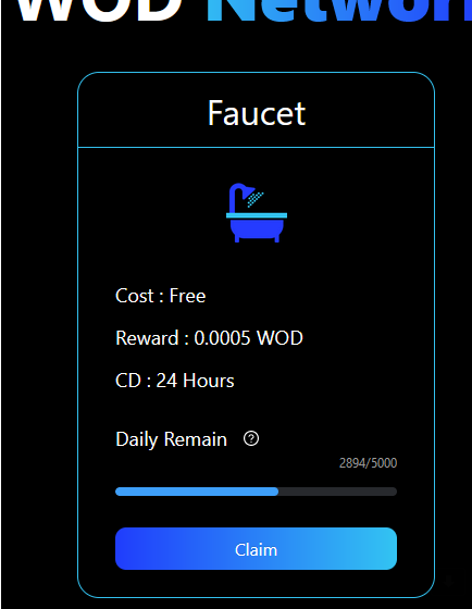 테스트 토큰 받기: https://www.wod.ai/Faucet