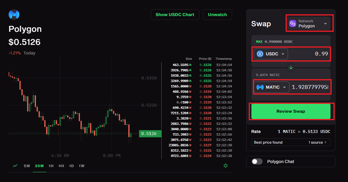 체인 선택 -> 토큰 및 수량 선택 -> 스왑 진
