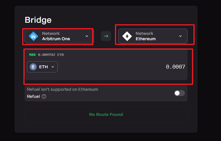 체인 선택 -> 토큰 및 수량 선택 -> 브릿지 진
