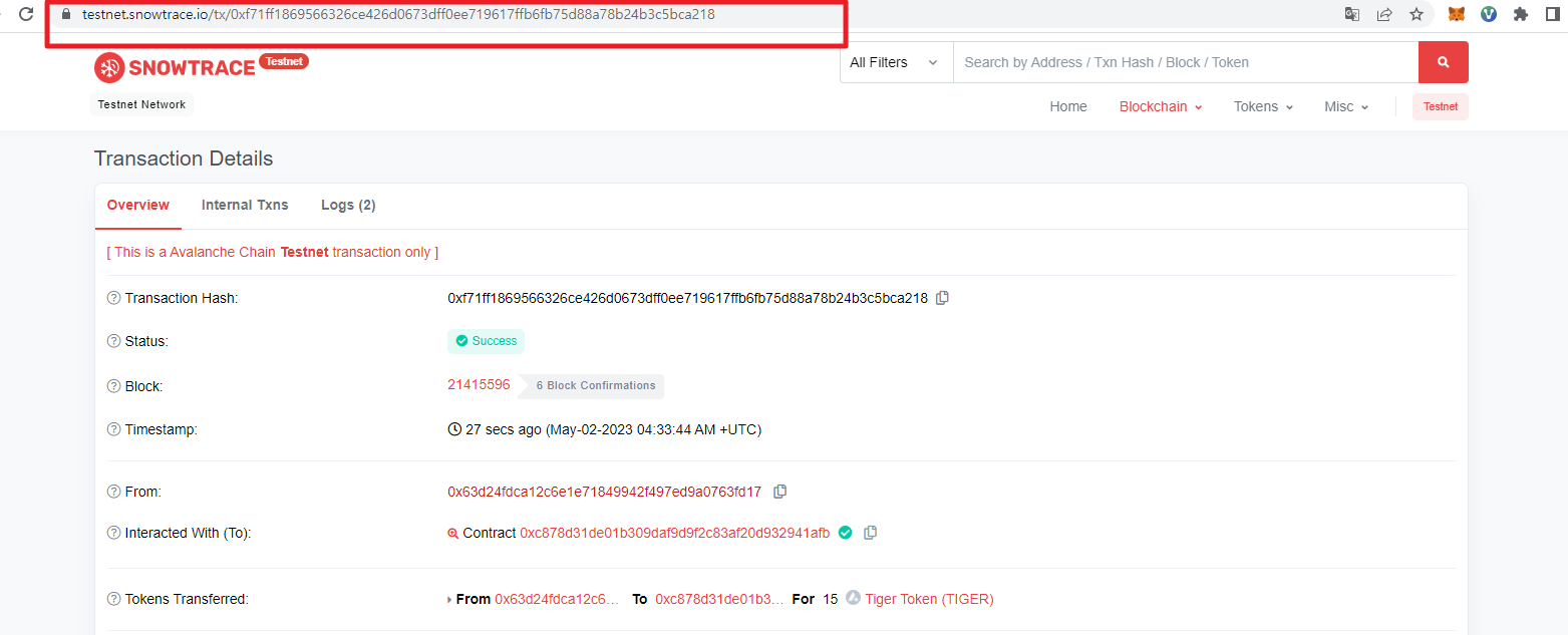 3) 그럼 아래와 같이 트랜잭션 화면으로 넘어갑니다. 빨간 네모 박스의 주소창 전체를 복사합니다.