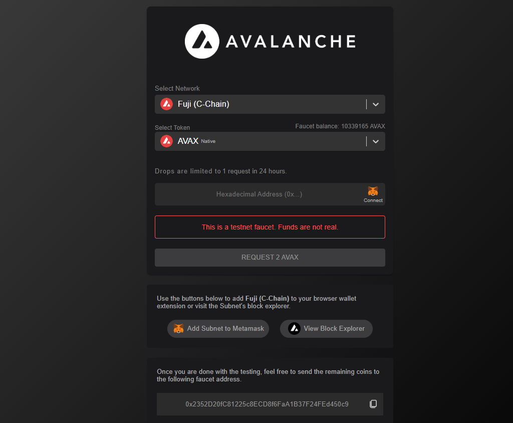 사이트 이동하여 자신의 메타마스크 주소를 넣고 REQUST2 AVAX 클릭!!
