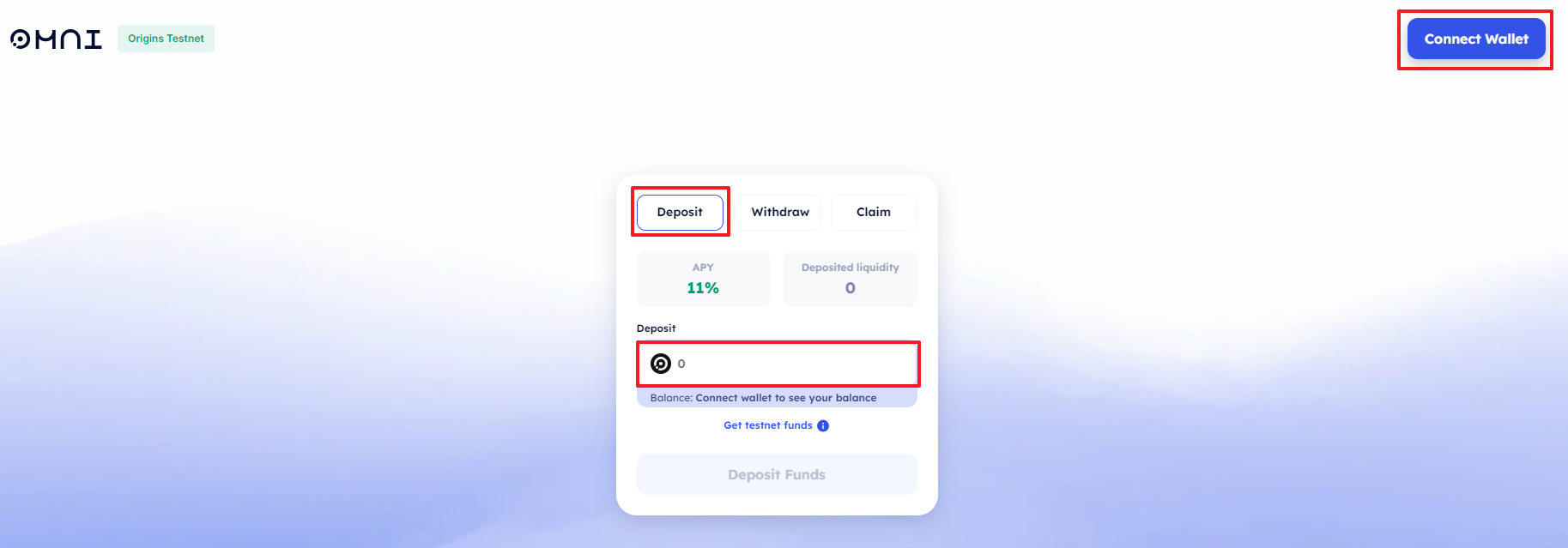 | - 오른쪽 상단 지갑 연결 - 'Deposit' 클릭 - 수량 입력 - 'Deposit Funds'클릭! 완료. |
