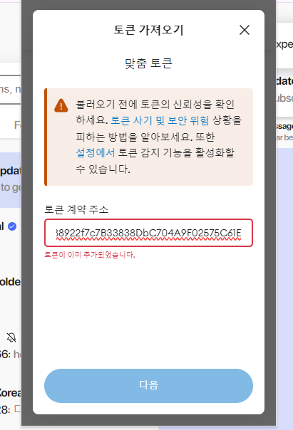 - 토큰 계약 주소에 비블 컨트랙 주소 입력하여 수량 확인