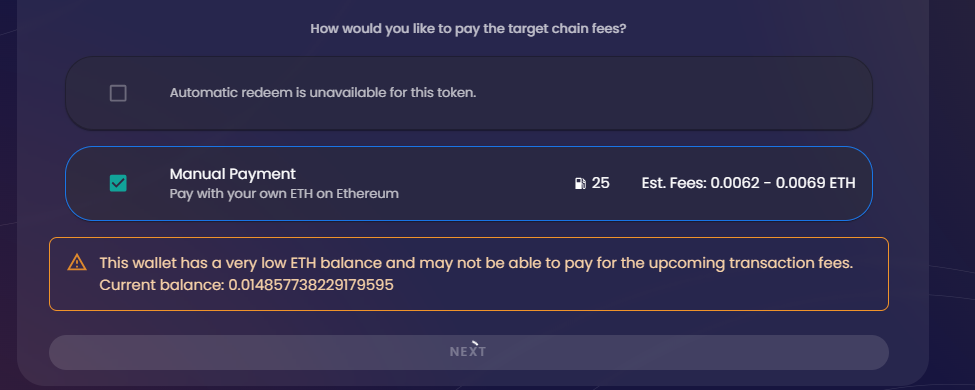 - 'select a token' 에서 비블 컨트랙 입력 - 브릿징 수량 입력 - Next 클릭!