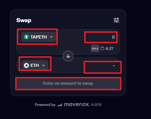 이번엔 스왑 이용입니다. 사이트 이동 후 스왑할 토큰에 TAPETH선택!! 아래에는 ETH 선택 후 적당량의 수량을 입력후 스왑 완료하기.!