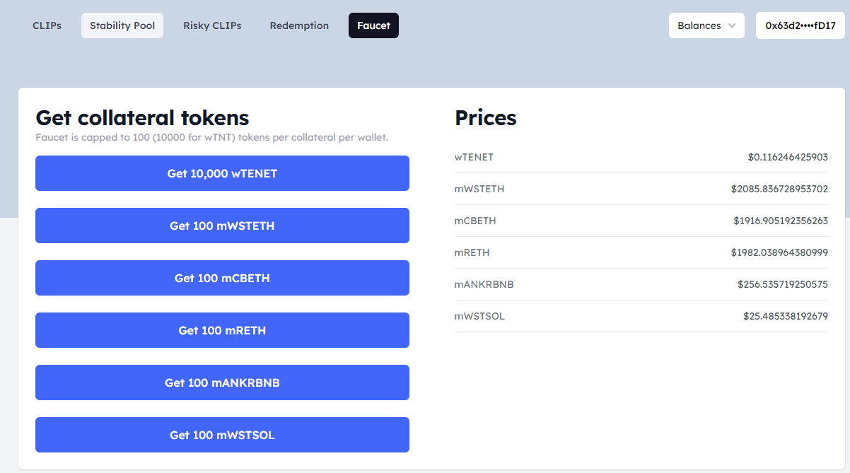2. Faucet 에서 $TENET 테스트넷 토큰 받기-