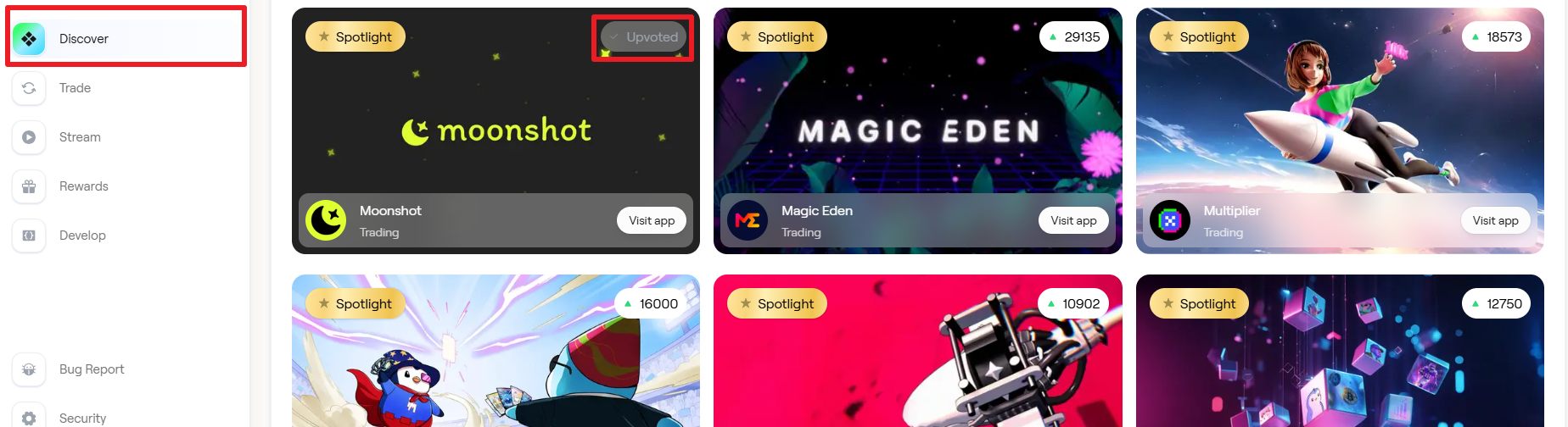 : 우측 상단 숫자 눌러 원하는 app에 투표 진행 - 뱃지 클레임
