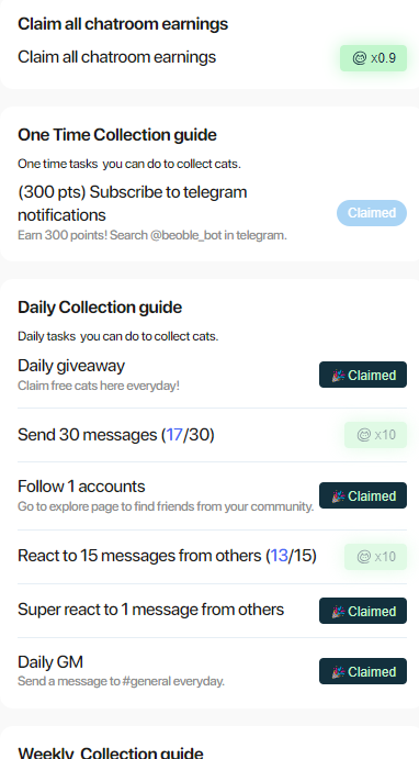 Beoble는 웹3 채팅 플랫폼입니다. 지금의 텔레그램과 비슷한 형식이라 생각하시면 됩니다. 현재 베타버전이 나왔고 베타버전에서 일일과제와 주간과제를 통해 포인트를 획득하실 수 있습니다. 따로 들어가는 비용은 없고 자신의 지갑으로 계정만 만들면 되니 아래 가이드를 따라 일단 포인트를 모아보시기 바랍니다.