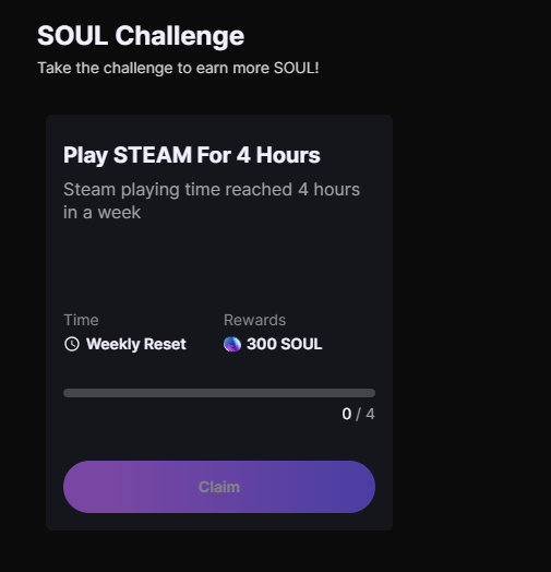 하단에 SOUL Challenge 가 있습니다. 매번 나오는 챌린지를 완성하여 SOUL을 추가로 획득할 수 있습니다. 그리고 매일 Ronin, opBNB, zkSync Era 세 체인에서 마이닝을 획득하시기 바랍니다.