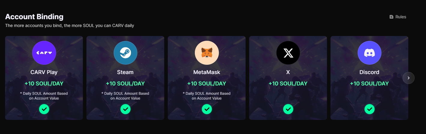 CARV 프로토콜은 Web3 게임 자격 증명 플렛폼입니다. D2E를 추구하며 플렛폼 내에서 다양한 상호작용을 통해 SOUL로 보상을 주고 있습니다. 향후 이 SOUL은 $ARC 토큰으로 변환되니 지금부터라도 아래의 가이드를 따라 SOUL을 모아보시기 바랍니다. 처음에 아래의 간단한 작업을 한 후에는 매일 사이트에서 한번씩 마이닝만 하시면 됩니다.