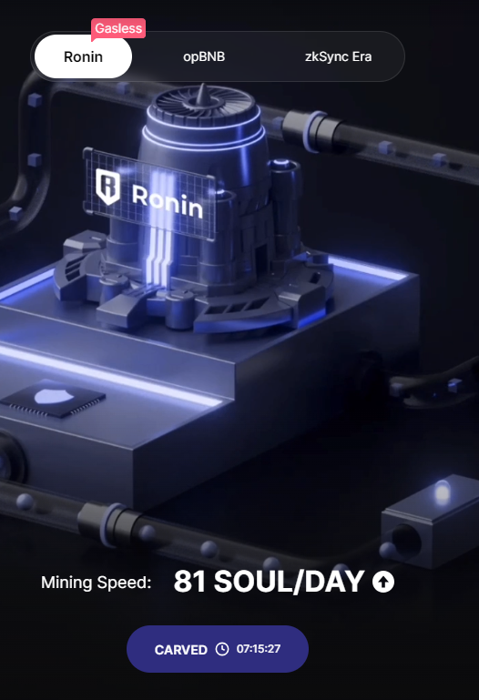 하단에 SOUL Challenge 가 있습니다. 매번 나오는 챌린지를 완성하여 SOUL을 추가로 획득할 수 있습니다. 그리고 매일 Ronin, opBNB, zkSync Era 세 체인에서 마이닝을 획득하시기 바랍니다.