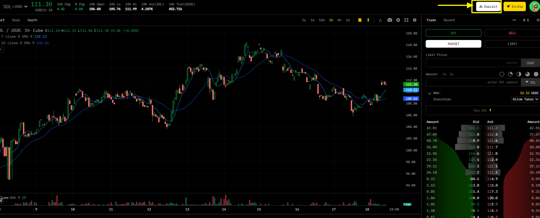 - 트레이딩 화면에서 'Buy' , 'Market' 설정 후 산 후 바로 'Sell' 'Market'으로 바로 팔기 반복해서 거래량 채우기