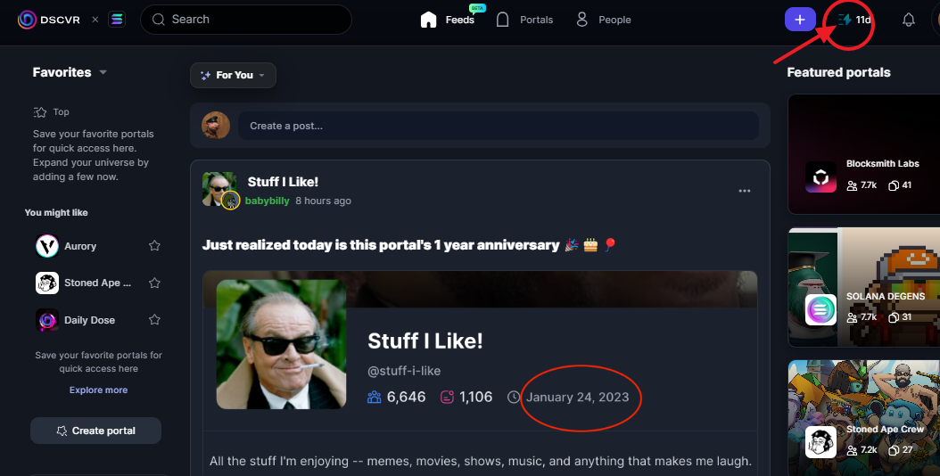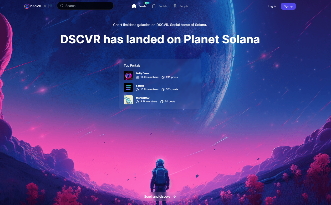 DSCVR은 솔라나 체인의 소셜미디어 플랫폼입니다. 현재 $9m 투자를 유치하였습니다. 플랫폼 내에서 포인트제를 적용하여 운영중에 있습니다. 매일 출첵을 통해 포인트를 쌓을 수 있으니 하루 1딸깍 진행해보시기 바랍니다. 포인트 기반으로 에어드랍을 준다고 합니다.