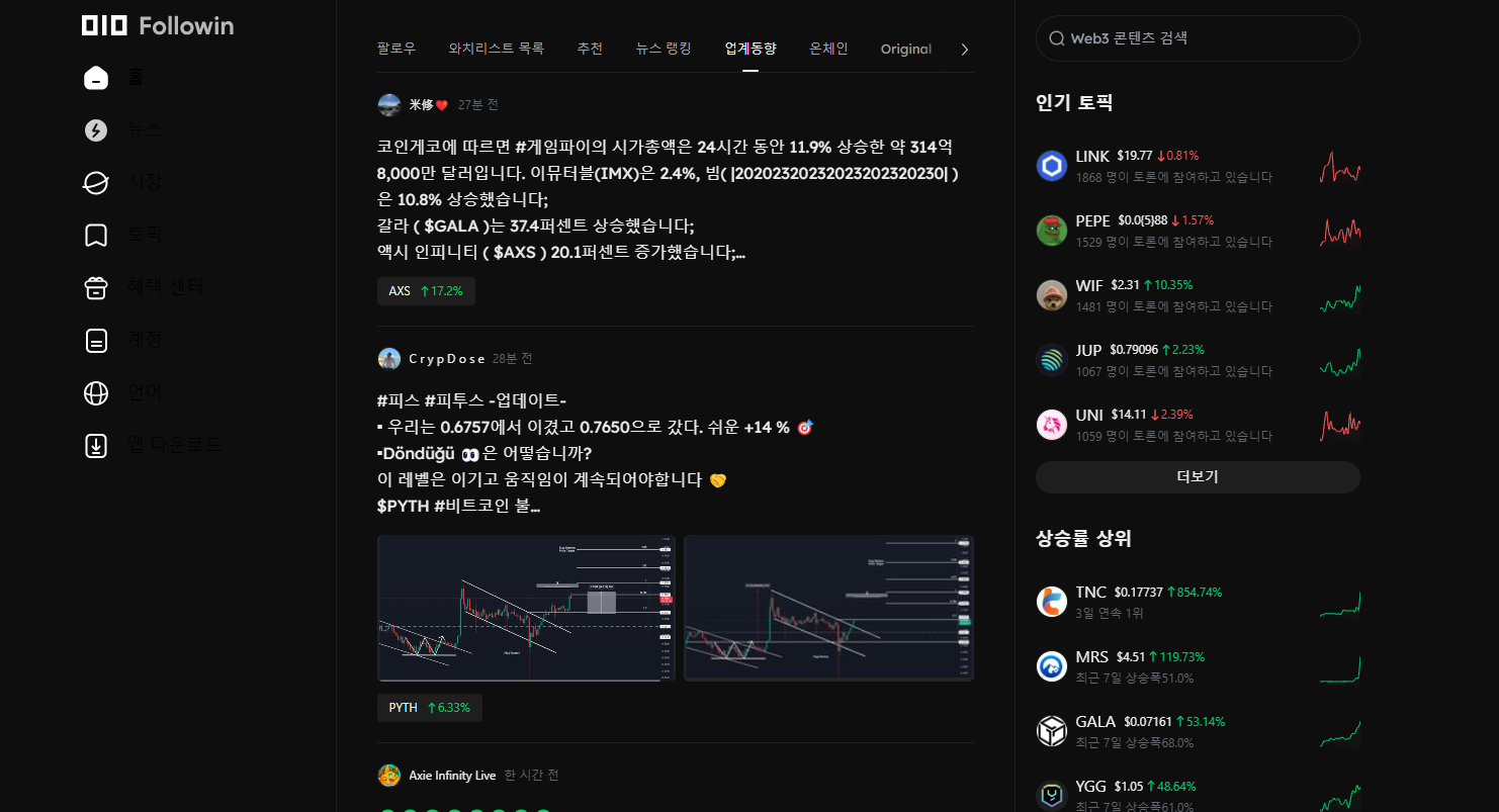 팔로인은 에이아이 기반 실시간 코인관련 뉴스들을 제공해주는 프로젝트 입니다. 현재 글로벌 사용자 수가 100만명을 돌파하였고, 어플 또한 크립토 관련 뉴스들을 써칭하기에 편리하기에 소개합니다. 현재 가입시 기본적인 미션과 매일미션으로 OLO를 받을 수 있는 데 이는 다른 코인들의 에어드랍 이벤트에 참여할 수 있고, 자체적으로 에어드랍을 줄 수도 있습니다.