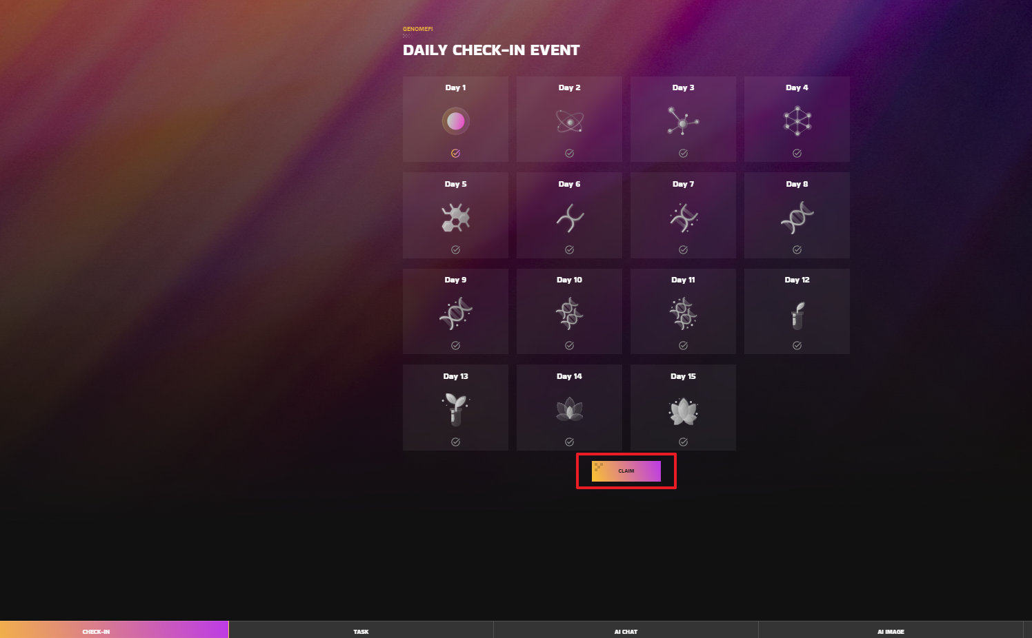 - 데일리 체크인에서 하단의 클레임 버튼 클릭 하면 끝.!