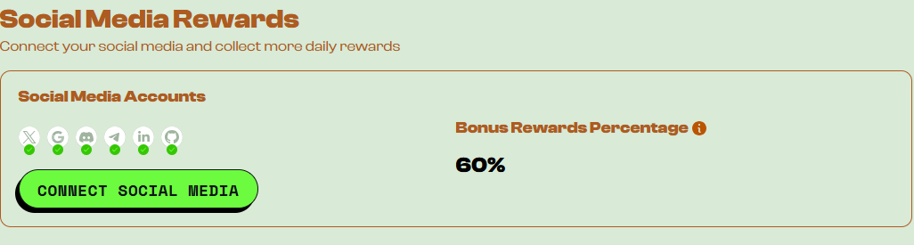 : 각종 소셜 미디어를 연동해주어 보너스 리워드를 올려줍니다.