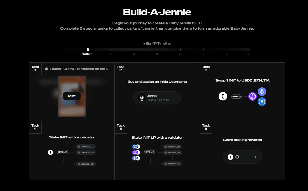 이니티아의 테스트넷이 런칭! 테스트넷이기에 비용은 당연히 무료! 매주 과제들이 제시되고 총 6가지 과제들을 해결하며 레벨을 올려주면 끝.! 테스트넷 첫 주 함께 작업해 봅시다.!