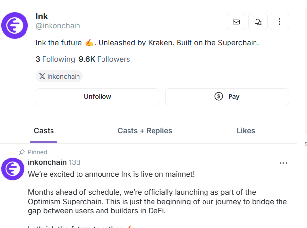 ☞ Ink 는 미국에서 두번째로 큰 거래소인 크라켄에서 만든 체인