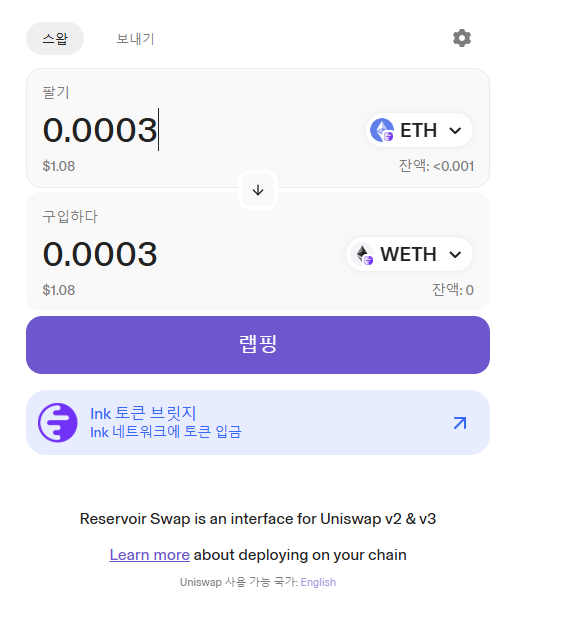 2. 0.0003 weth, 1usdc.e 보유: 스왑 사이트 클릭!