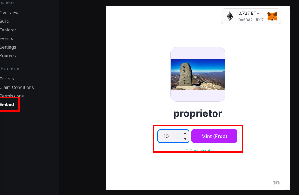 먼저, 왼쪽의 embeded를 클릭하여 자신의 코인 10개를 구입합니다.