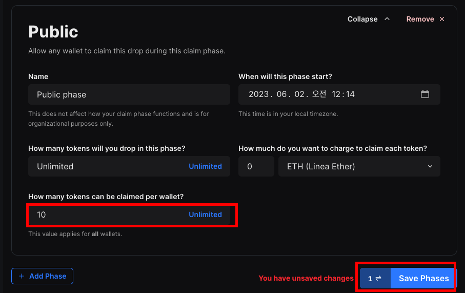 이제 아래와 같은 화면에서 갯수를 10개로 설정 후 save phase 클릭!!