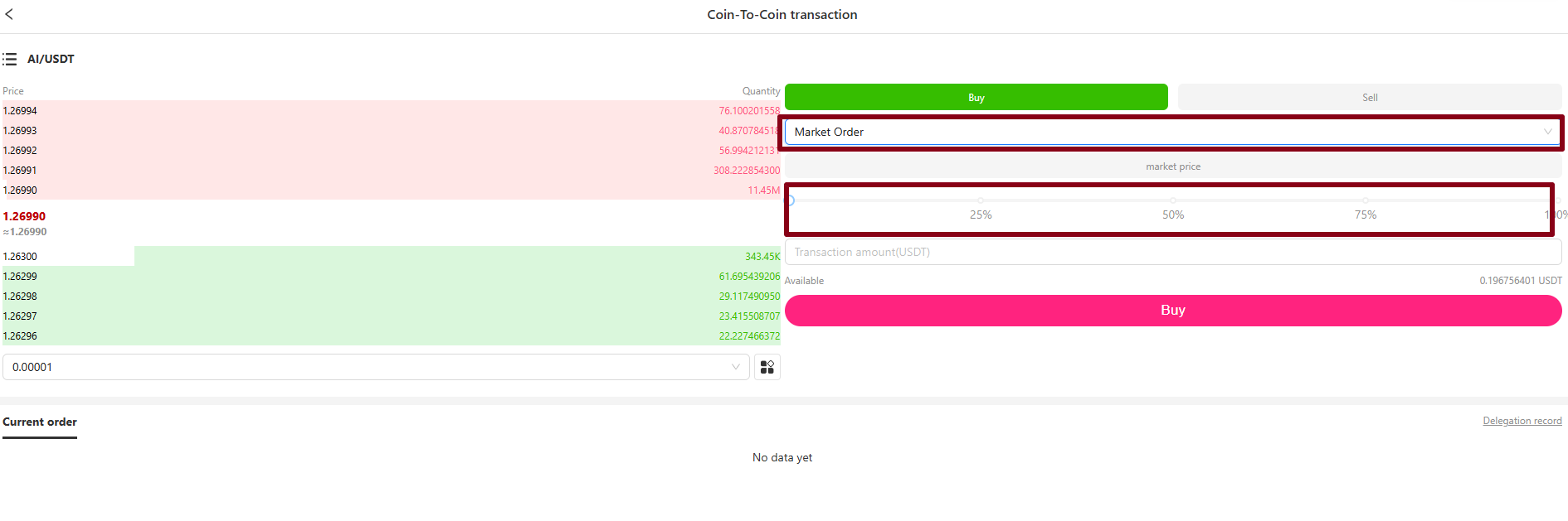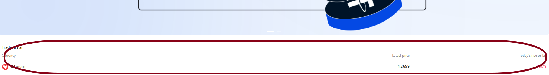 사이트 들어가서 지갑연결 후 하단의 AI/USDT 거래 쌍 클릭