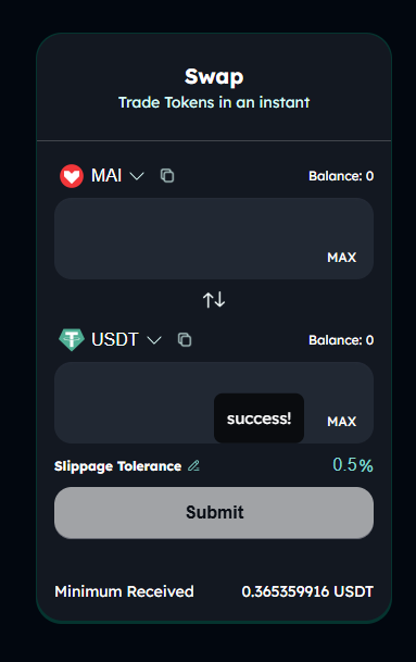 - Mango -> USDT 스왑 -> MAI 로 스왑 -> 다시 USDT로 스왑