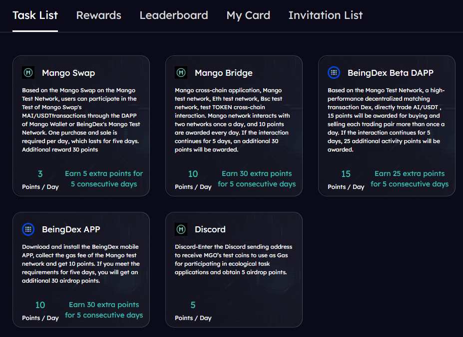 ☞ 테스트넷에서 출첵 및 다양한 퀘스트 들로 포인트제 운영중