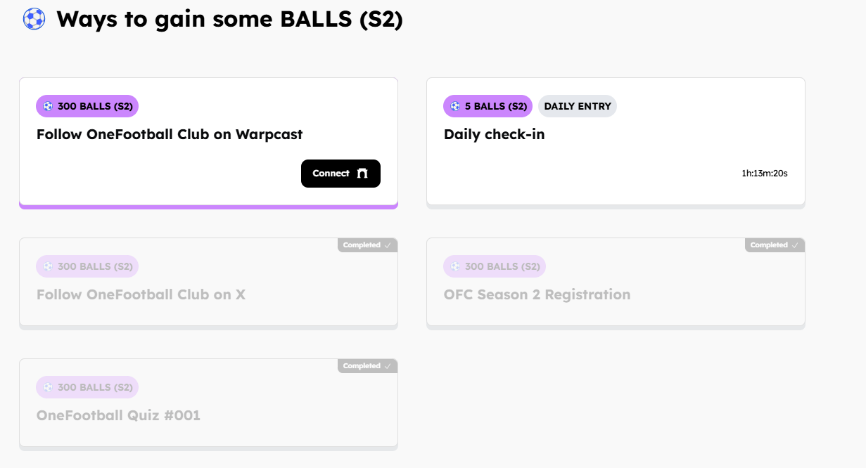 ☞ 토큰 보상 방법: 원풋볼 플랫폼에서 딸깍 미션 수행을 통한 ball 획득