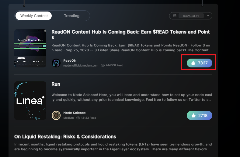 리드온은 AI 기반 몬텐츠 플랫폼으로 콘텐츠를 AI에게 읽히고 그에 따른 보상을 받을 수 있습니다. 올해 2~3분기 중에 $RGT를 발행 예정이라 하니 포인트를 획득해보도록 합시다.