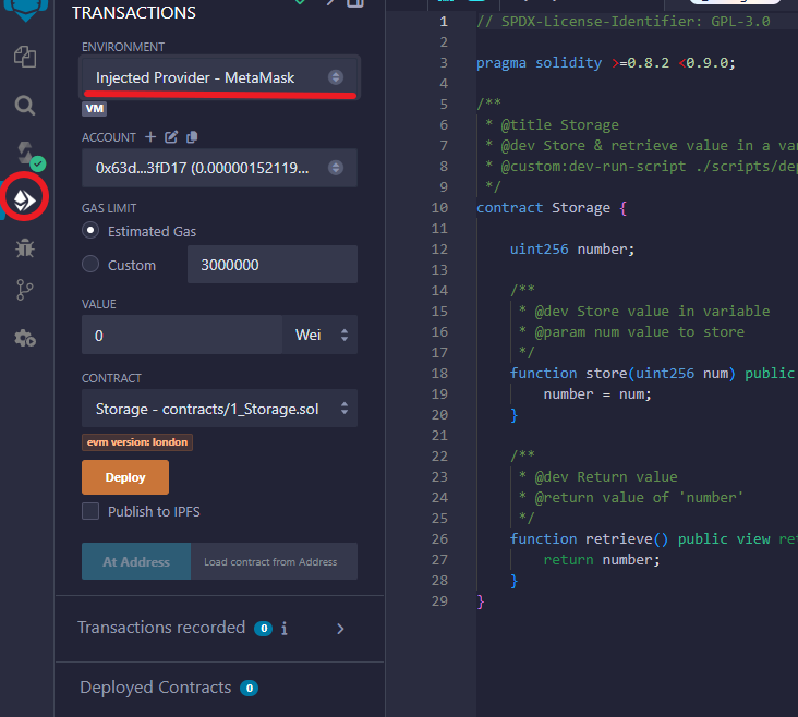 Deploy & run transactions - Injected provider - metamask로 설정 - deploy 하면 끝.!