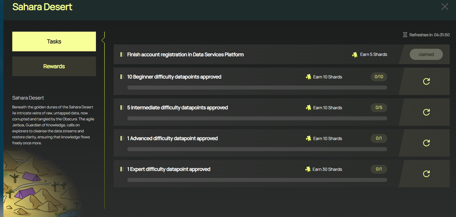 ☞ 각 지역의 NFT를 모아 사하라 레전드 NFT를 얻는 것이 목표