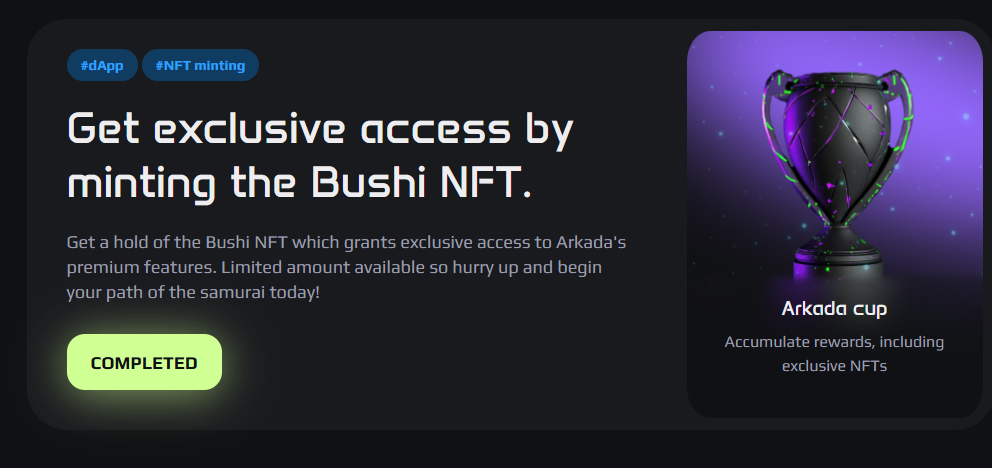 : 아카다 지갑 연결 후 Bushi NFT 민팅