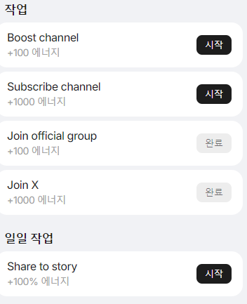 4. 에너지는 작업 및 유료 별 결제를 통해 가능한 것 같음