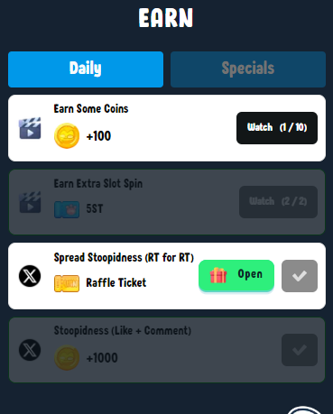 -. earn: 미션을 통해 포인트 및 래플 티켓 획득