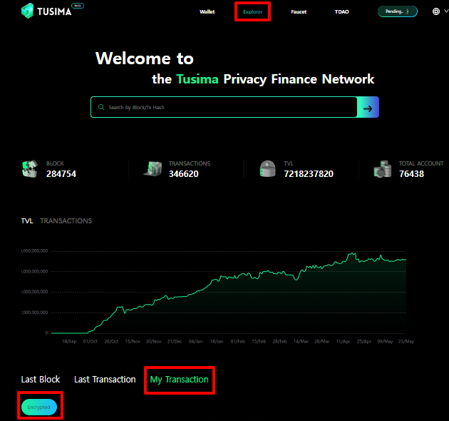 화면 상단의 EXplorer 클릭 -> 하단의 My Transaction 클릭!! -> Encypted 클릭!!