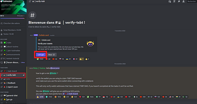 디스코드 가입 후 verify-tsbt 클릭! Let's go 클릭 후 진행하면 Tester Role 획득!!