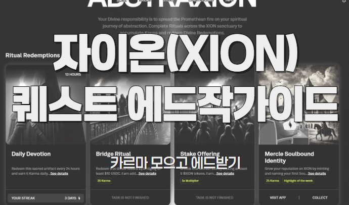 ☞ 자이온의 에어드랍 시즌2. 퀘스트 플랫폼이 출시되었음.