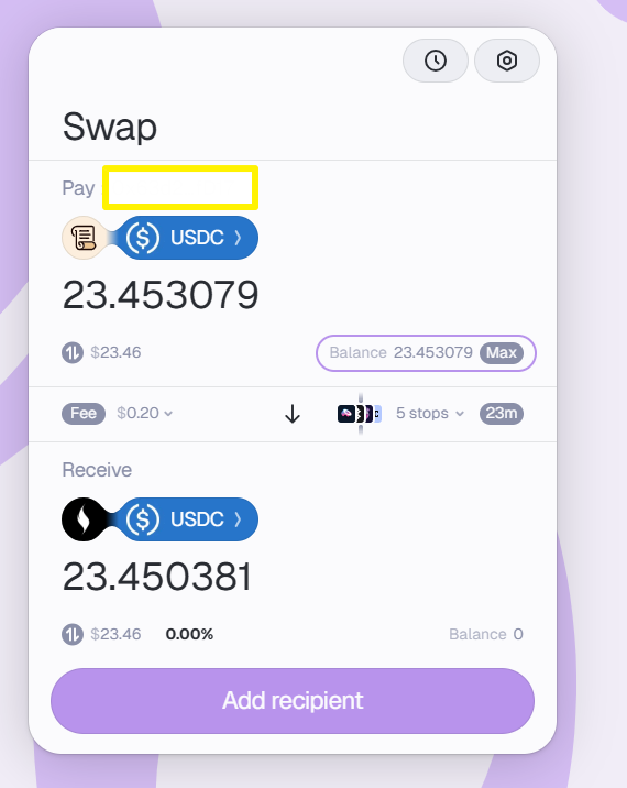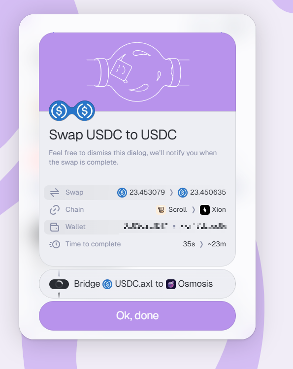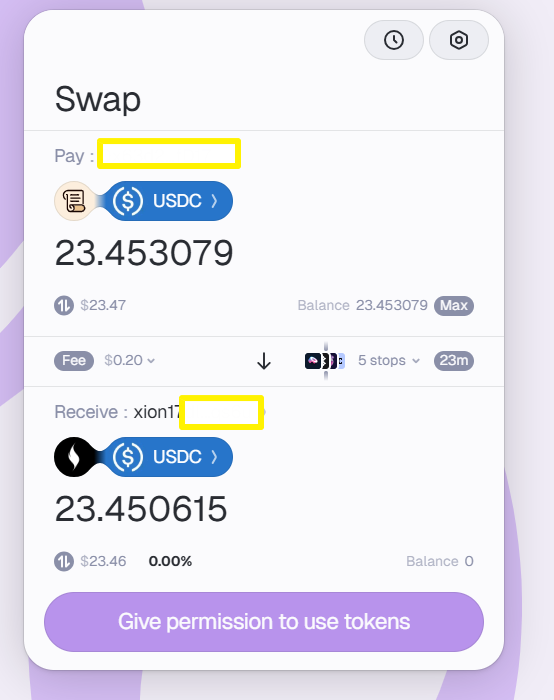 -> 지갑 주소를 다 입력하셨다면 스왑 진행. 23분 정도 걸린다고 나오네요.
