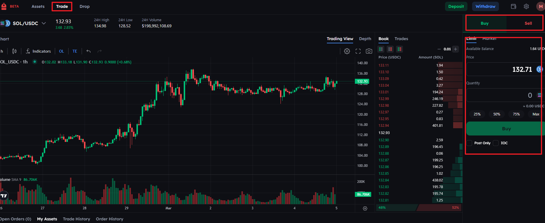 - trade 클릭! 자신이 입금한 코인으로 사고 팔고 하며 거래량 채우기