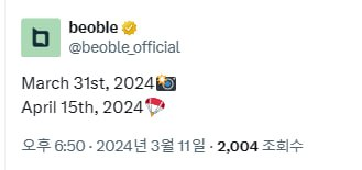 다들 beoble도 참여하고 계시겠죠?? 비오블의 스냅샷 및 에어드랍 일정이 공지되었습니다.