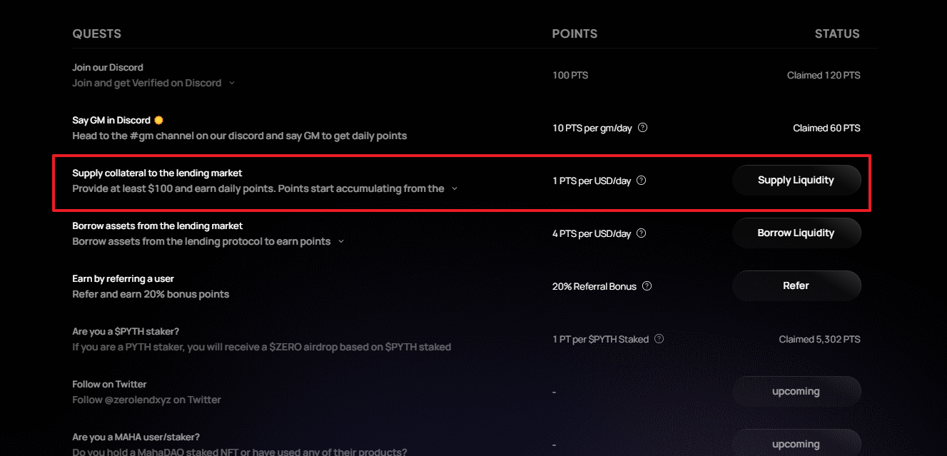 [Zero lend] 분산형 대출 프로토콜! 포인트 모아 에어드랍 준비하기
