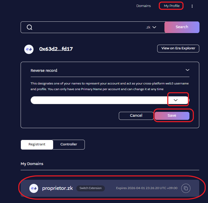3. 프로필에 들어가 구입한 도메인 저장 및 크로스 체인